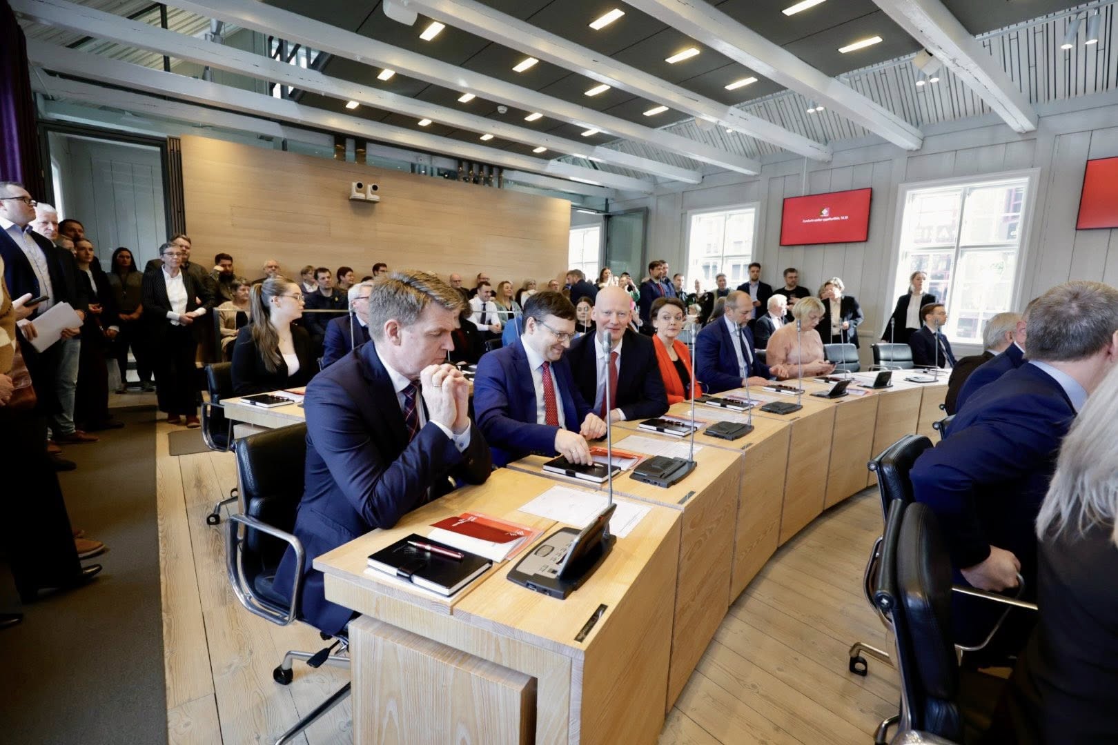 Eftir at Beinir Johannesen varðv valdur til løgmann tók hann orðið, har hann boðið frá, hvøri seks landsstýrisfolk, hann hevur valt aftur at sær í landsstýrið.