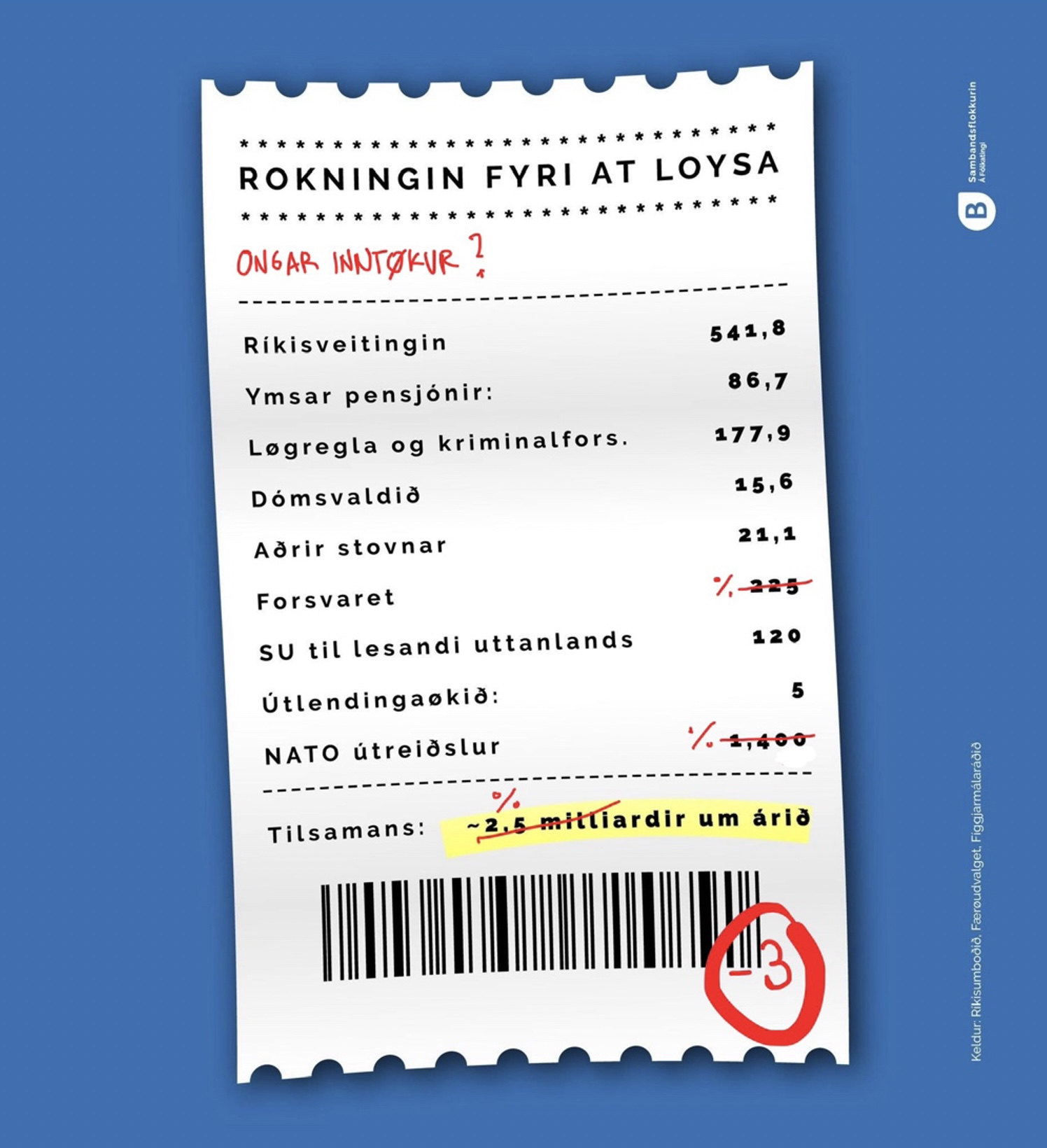 Hetta seinasta roknistykkið hjá Sambandsflokkinum er í øllum førum rættiliga villleiðandi. Útreiðslur eru pumpaðar upp og inntøkur eru ”gloymdar”. Ivaleyst er tað við beráddum huga, tí fyrst og fremst snýr tað seg helst um at ræða og at tosa føroyingar niður og danir upp.