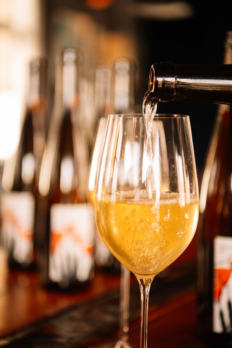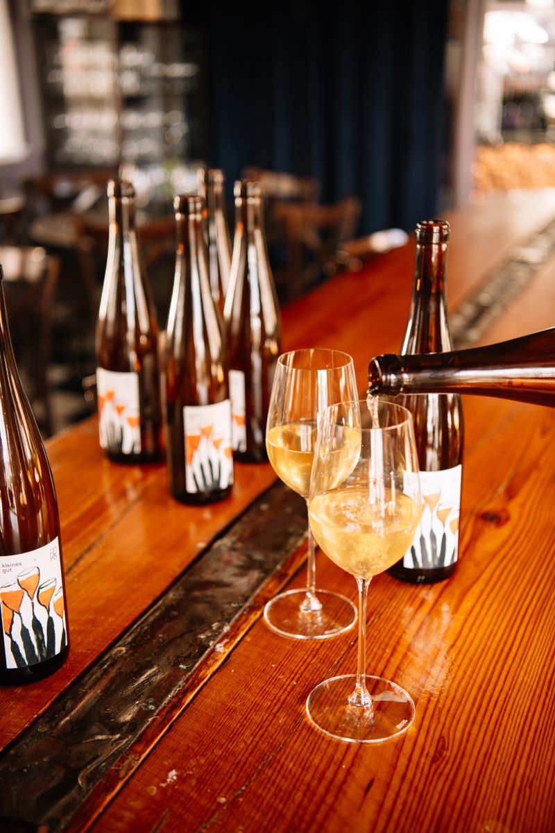 Vit smakkaðu okkum ígjøgnum vínúrvalið, og serliga ein Riesling skaraði framúr. Hon vísti seg at hóska serstakliga væl til okkara matskrá – elegant og við góðari javnvág, sum lyftir smakkirnar í matinum uttan at taka yvir. Nýggja vínið er ein frísk og sera væl balanserað Riesling, framleidd uttan íblandingarevni.