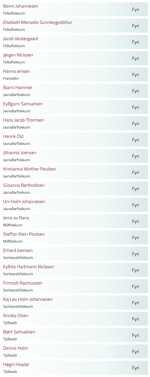 Tað var bara hjá Javnaðarflokkinum og Miðflokkinum, at allar atkvøðurnar vóru fyri málinum.