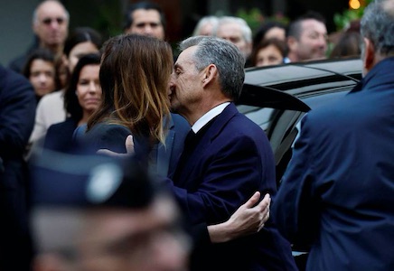 Seinastu tríggjar vikurnar hevur Nicolas Sarkozy sitið í La Santé-fongslinum í París, og á myndini her niðanfyri sigur hann konu síni, Carla Bruni, farvæl, áðrenn hann fer inn at sita.