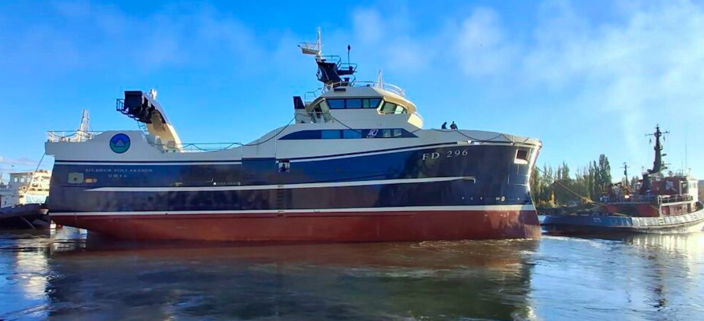 - Skrokkurin á Sjúrði Tollakssyni, sum er bygdur á Stozcnia Wisla skipasmiðjuni í Gdansk í Póllandi, verður nú sleipaður til Skagen.