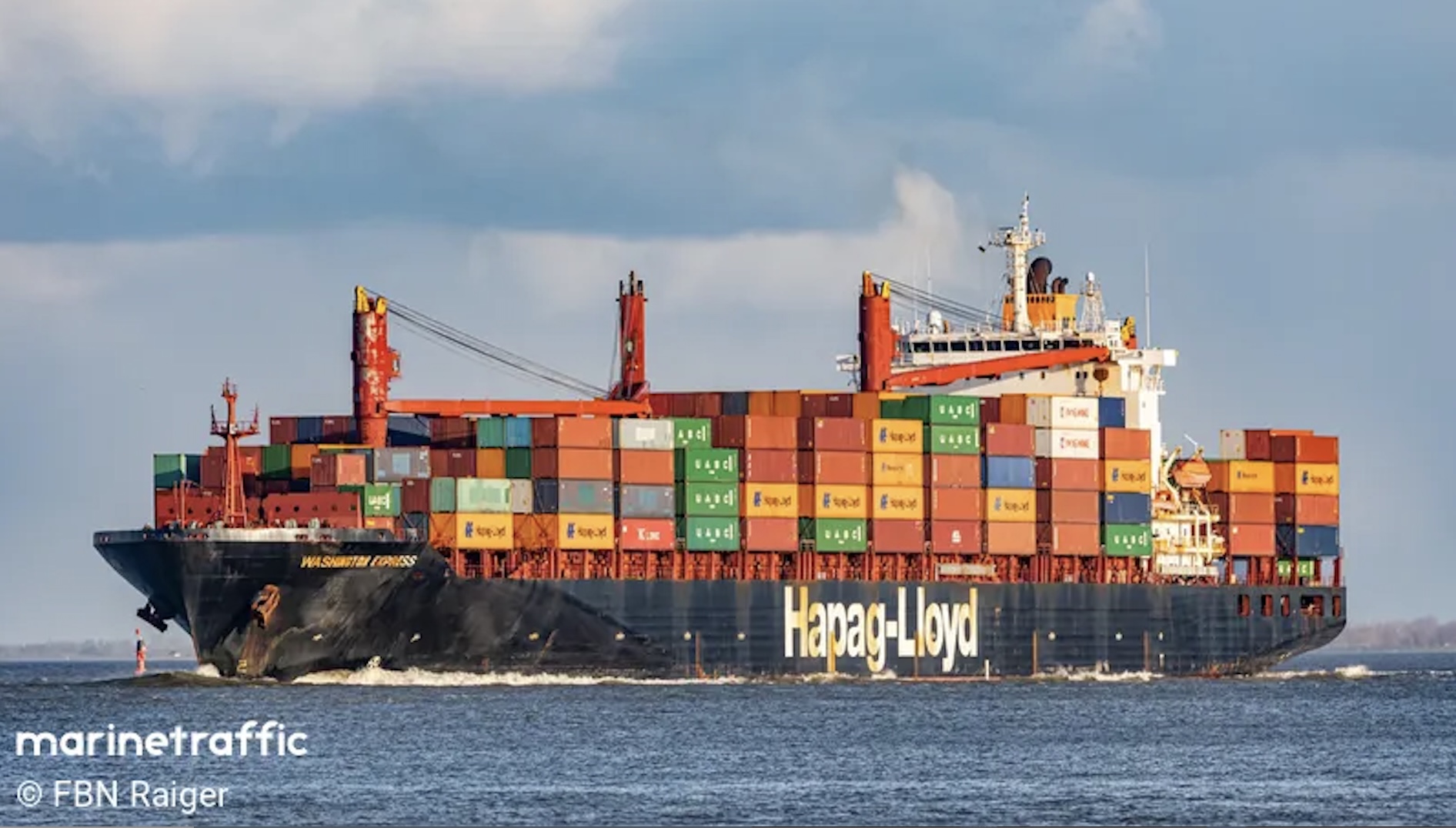 Talan er um eitt skip, sum Hapag-Lloyd hevur leigað og framleigað til Mærsk. Skipið varð ikki beinleiðis rakt, men varð rakt av brotum frá projektilinum.