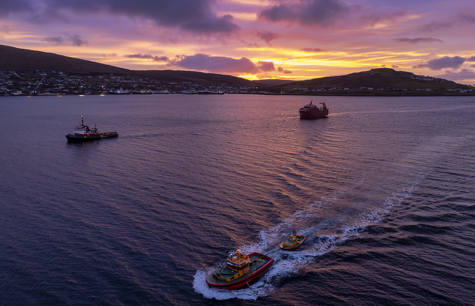 Í morgun, jólaaftansmorgun, kom Sleipibáturin Serval M/s á Skála við skrokkinum til nýggja frystitrolaran.
