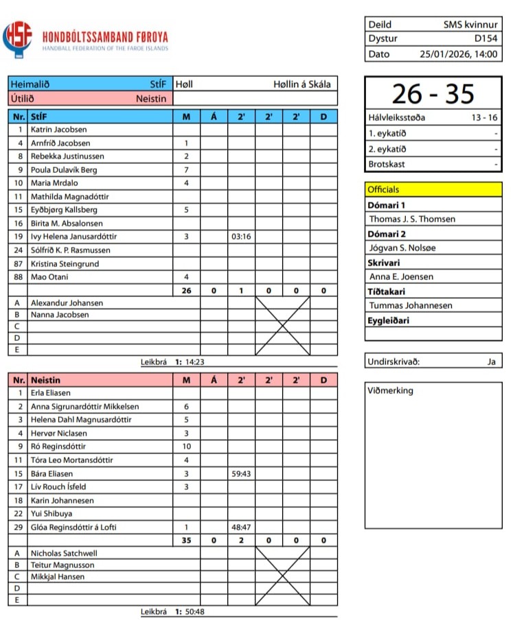 HER ber til frá HSF at síggja dómaraseðlarnar frá dagsins dystum, og støðuna í deildini: