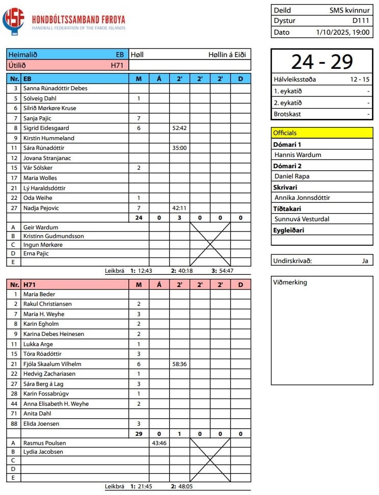 HER ber til frá HSF at síggja dómaraseðilin frá dystinum millum EB og H71: