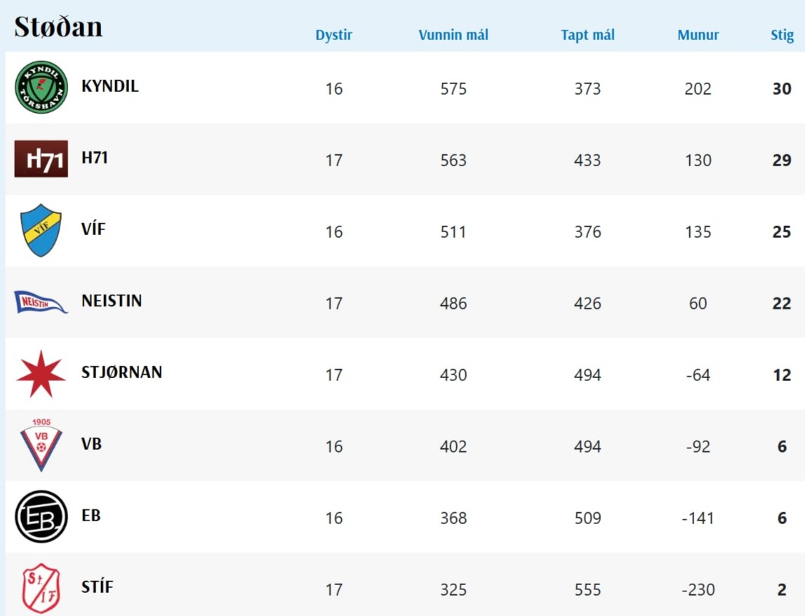 HER ber til frá HSF at síggja dómaraseðlarnar frá dagsins dystum, umframt støðuna: