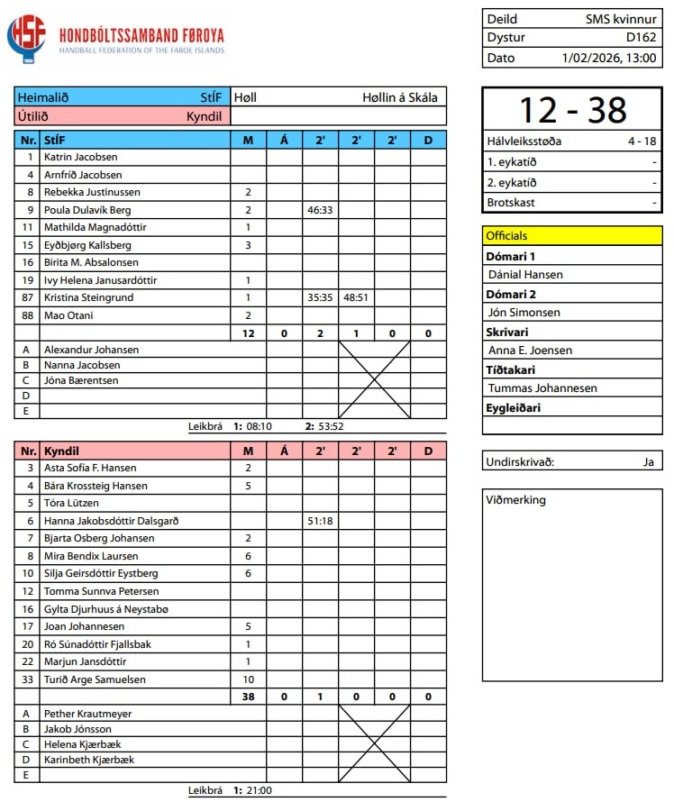 HER ber til frá HSF at síggja dómaraseðlarnir frá dagsins dystum, umframt støðuna í deildini: