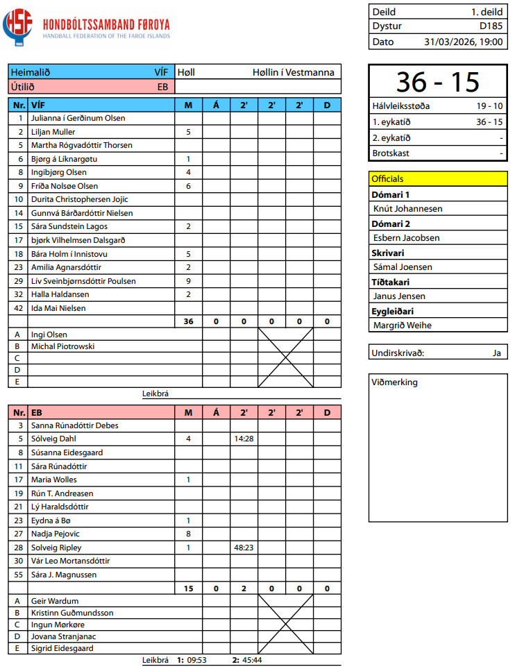 HER ber til frá HSF at síggja dómaraseðilin frá FM-fjórðingsfinaluni í Vestmanna:
