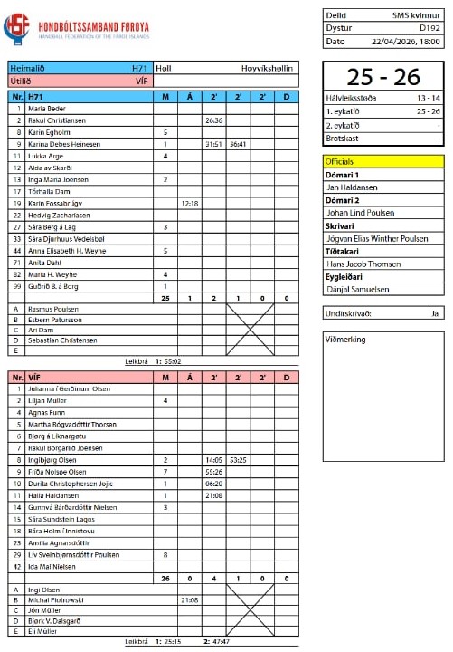 HER ber til frá HSF at síggja dómaraseðilin frá 3. FM-hálvfinaluni millum H71 og VÍF:
