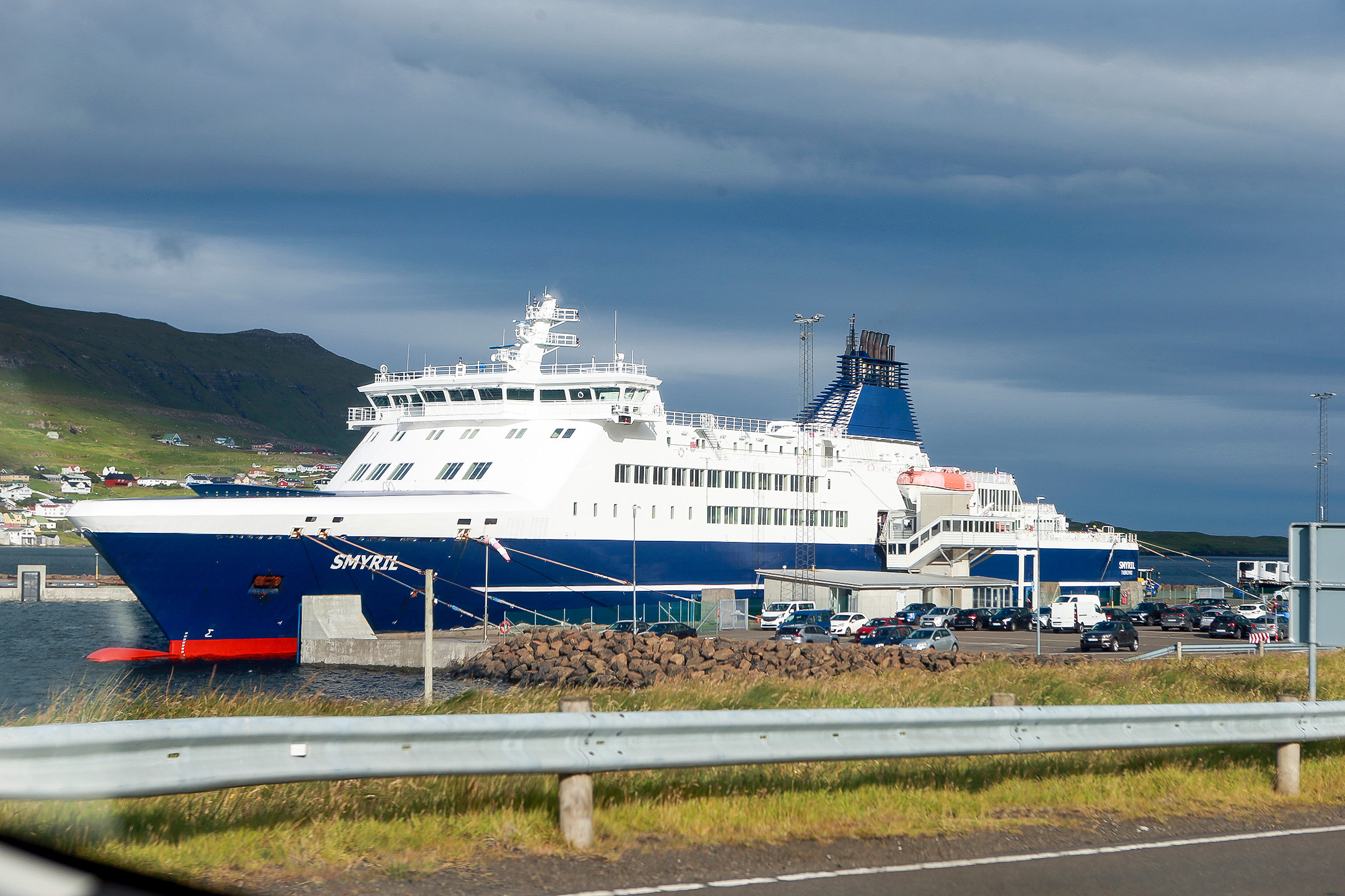 Sambært Strandferðsluni er orsøkin tann, at Smyril royndarkoyrir síðuskrúvurnar aftan, og tí verður fráferðin flutt frá klokkan 13 til klokkan 14.
