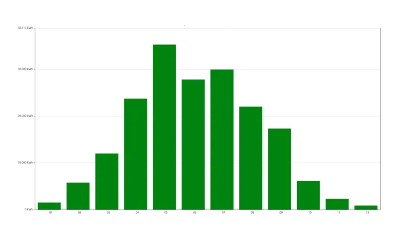 Stórur munur er á, hvussu nógv framleiðsla er summar og vetur. Niðanfyri standandi mynd er yvirlit yvir ársframleiðsluna á sólorkuverkinum í Sumba í 2025.