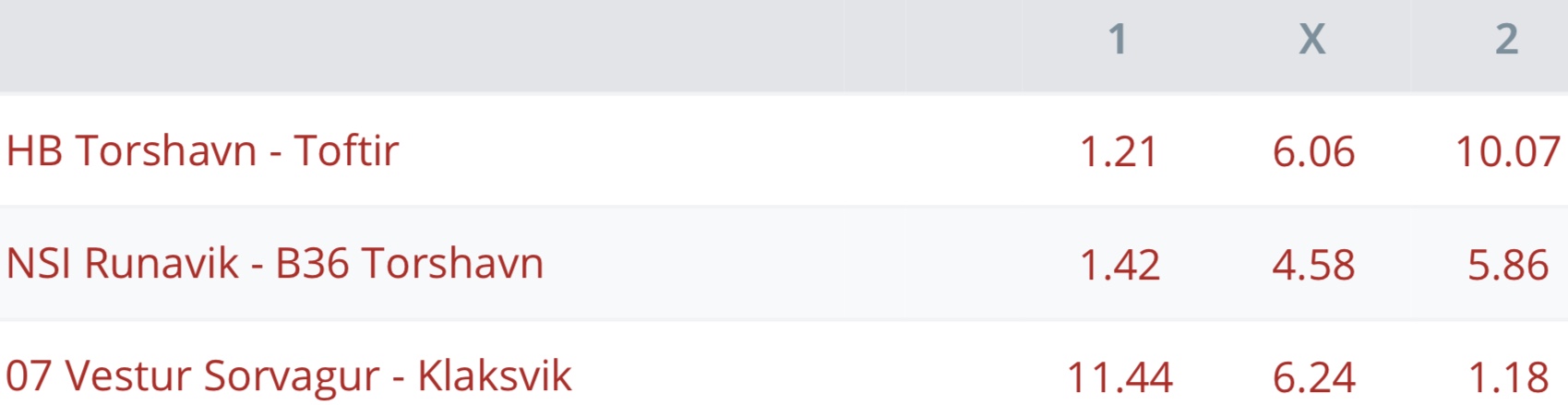 HER eru miðaloddsini upp á hesar tríggjar dystirnar: