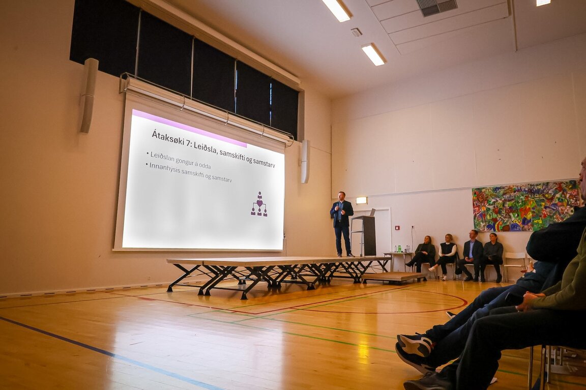 Arni D. Brattaberg, limur í stýrinum fyri BHS, bjóðaði vælkomin, og síðan løgdu arbeiðsbólkurin og Heri Norðberg, stjóri fyri BHS, fram og greiddu frá arbeiðinum og innihaldinum í BHS2035.