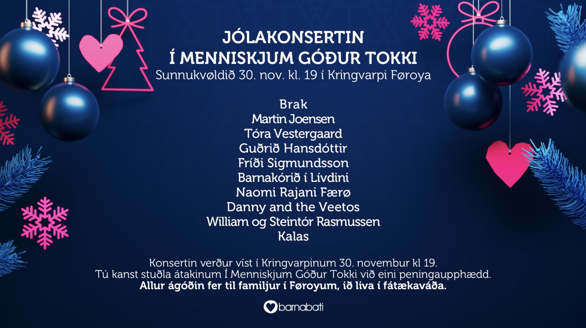 Nú stundar til árligu jóla- og stuðulskonsertina hjá Barnabata Í Menniskjum Góður Tokki.