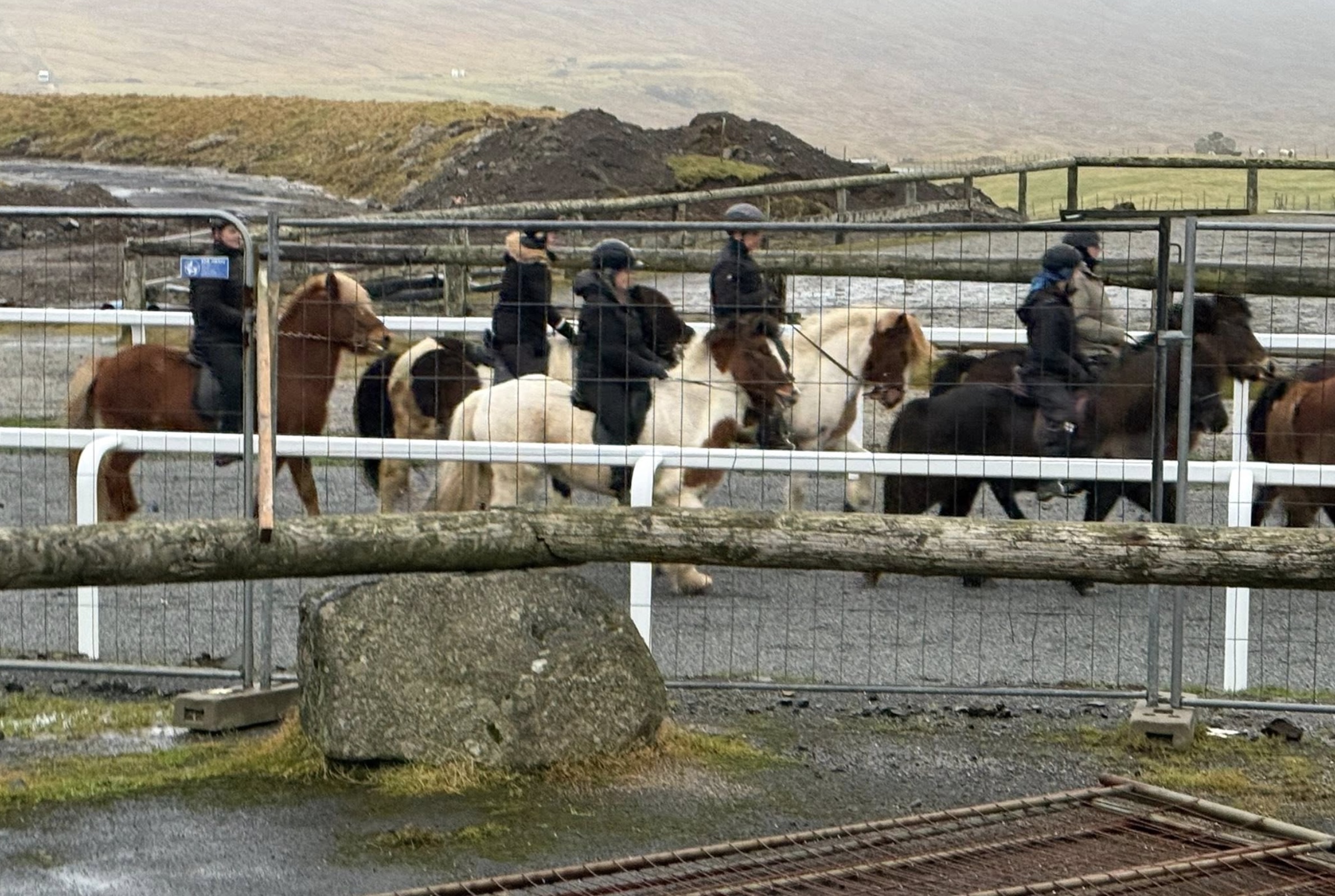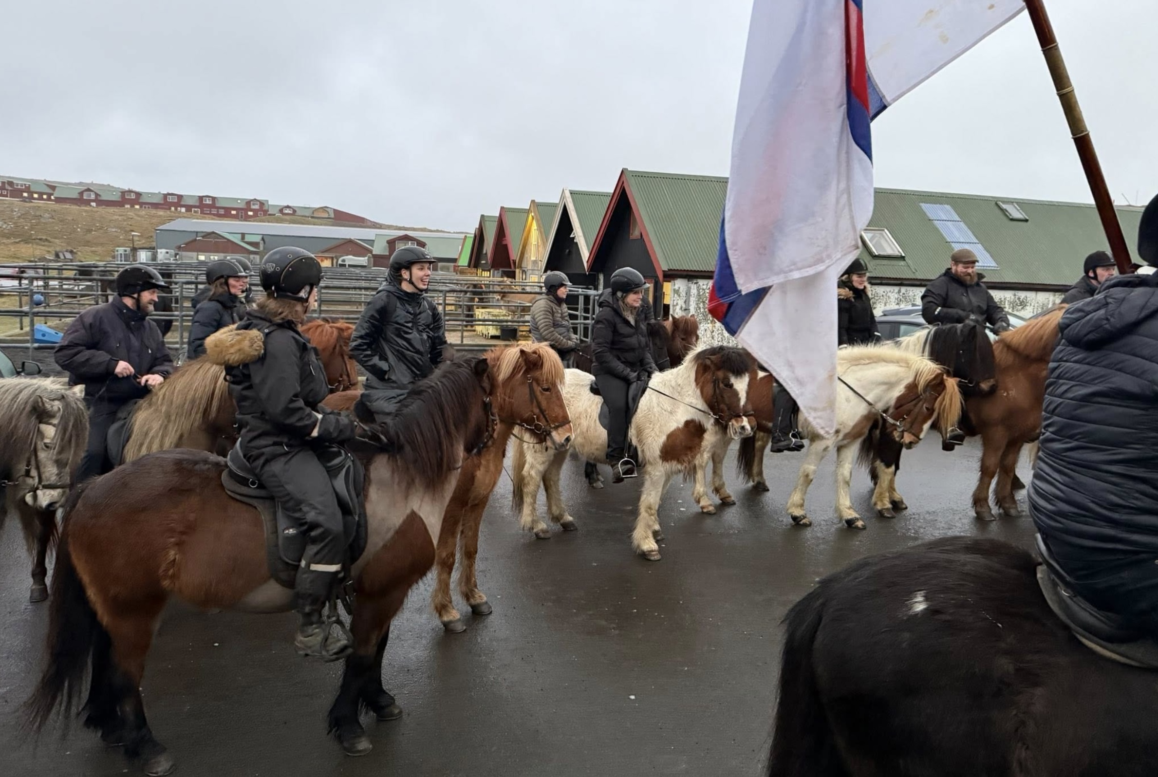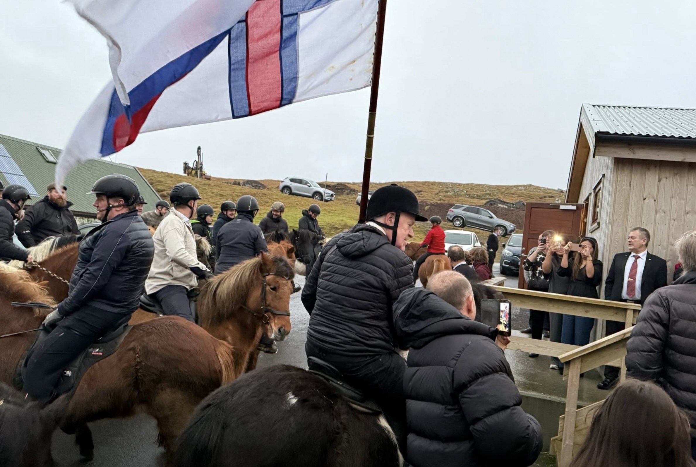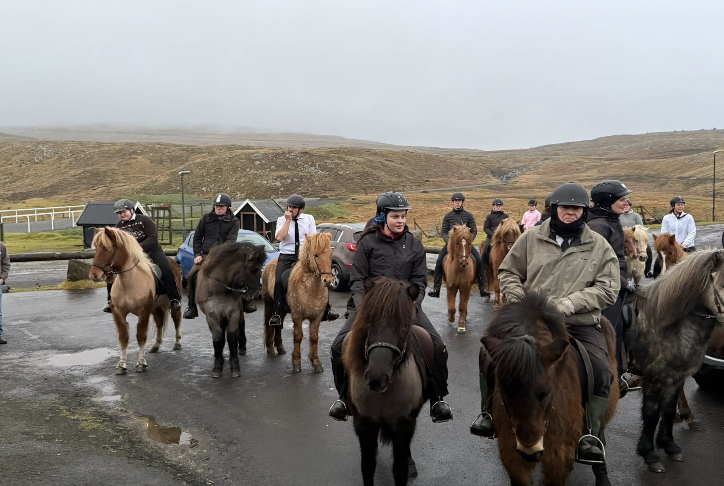 Ríðumenn og kvinnur, eini 50 í tali, skipaðu fyri ríðugongu fyri Svenning, sum tók í móti við heilsan og sungi var fyri honum, til lukku til tín.