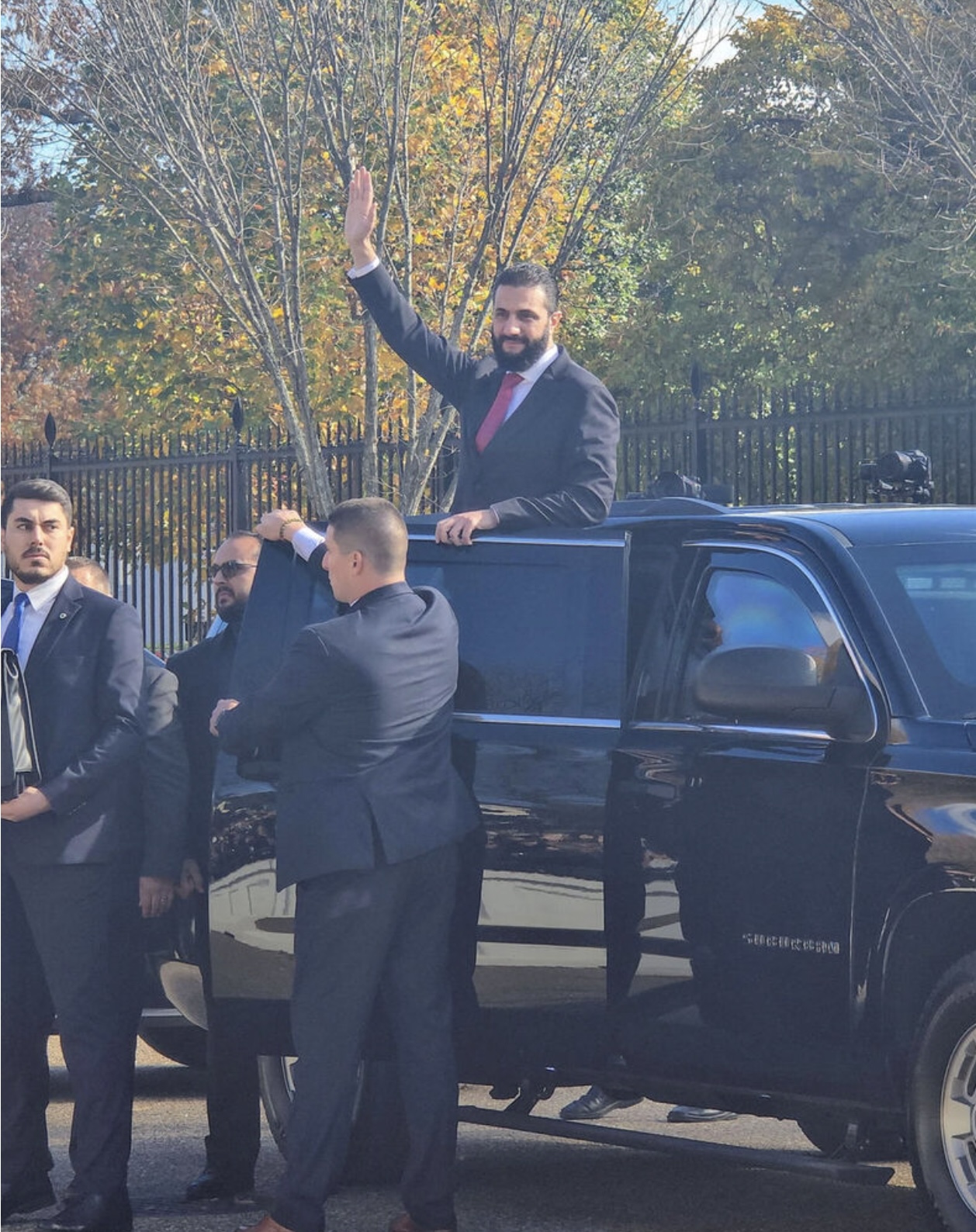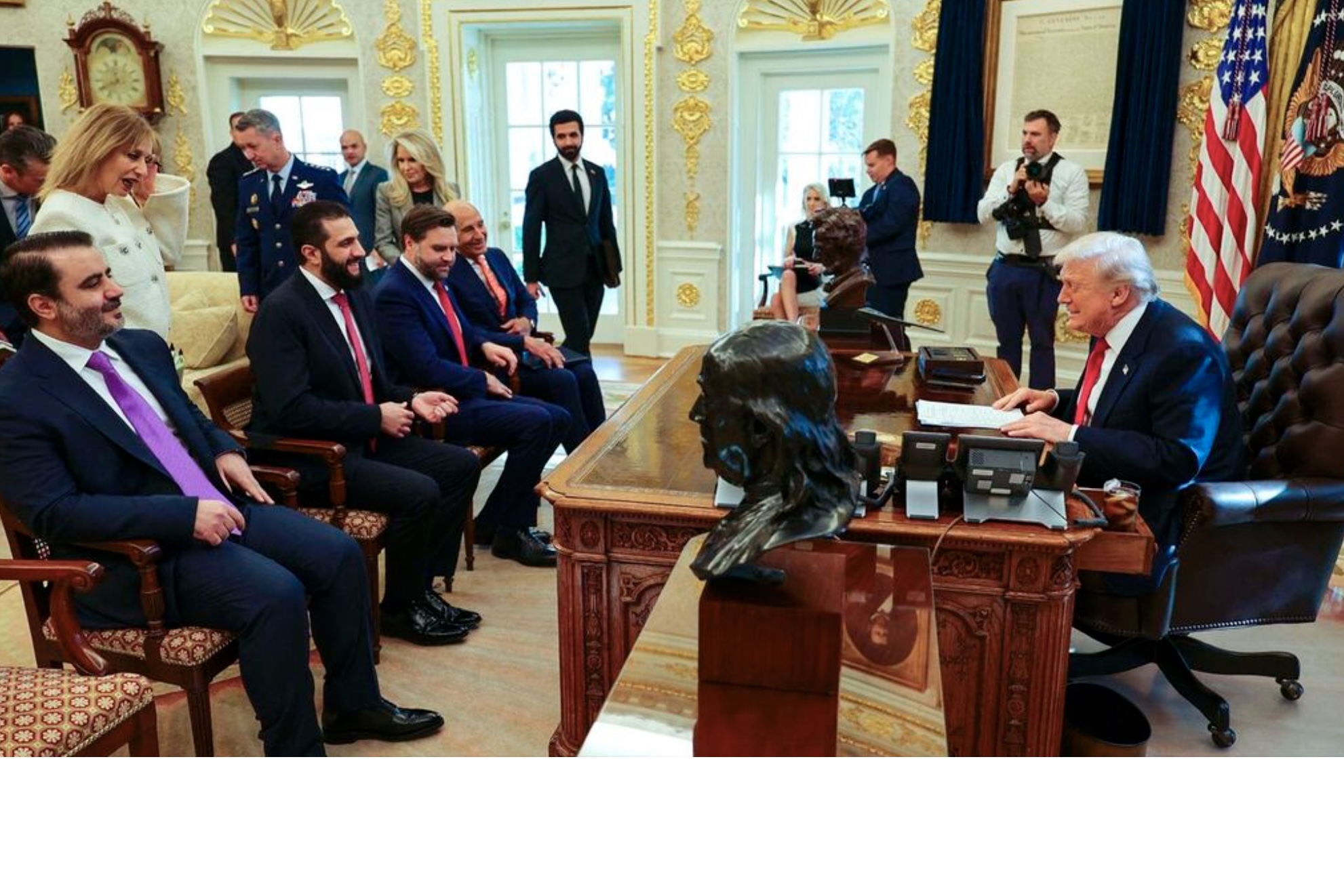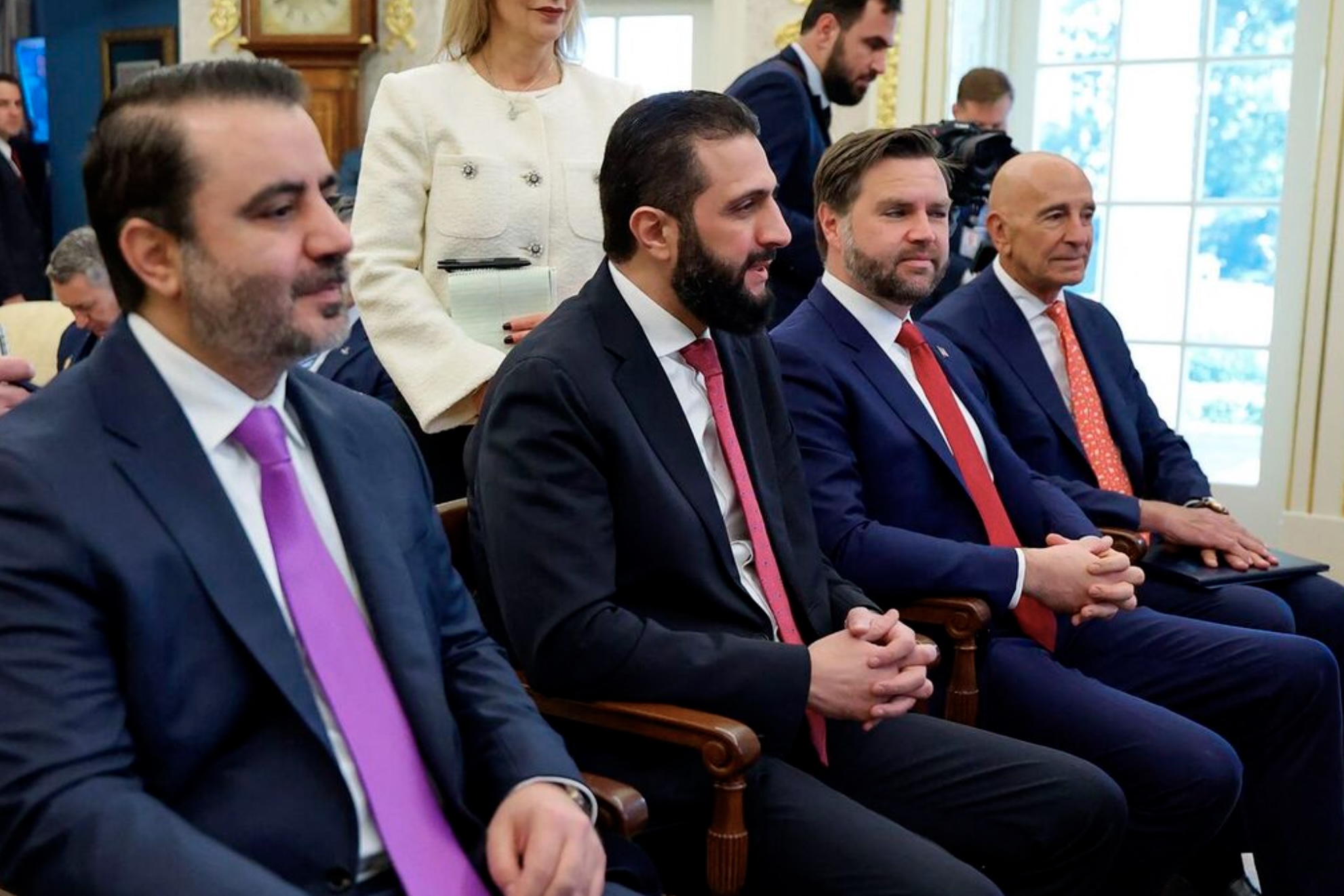 Tíðindastovan lýsir eisini, hvussu sýriski leiðarin kom til Hvítu Húsini uttan ta "fanfare", sum ofta er siðurin, tá útlendskir leiðarar vitja amerikanska forsetan.