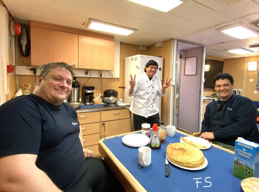 Í farnu vikuni lá Hav Skandic á Søldarfirði. Tá vitjaði sjómanstrúboðarin umborð, og tá hann kom inn í messuna, var filipinski kokkurin í holt við at seta nýbakaðar pannukøkur á borðið. Tá hann var spurdur um pannukøkur vóru filipinskar ella føroyskar svaraði hann brosandi, at tær vóru altjóða.