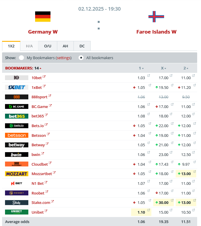 Týskland hevur eina stóra favorittstøðu hjá altjóða veddingarfyritøkum, ið lata odds upp á dystin.