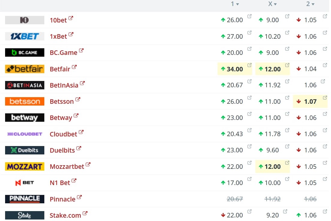 Oddsini upp á javnleik liggja millum 9,00 og 12,00.
