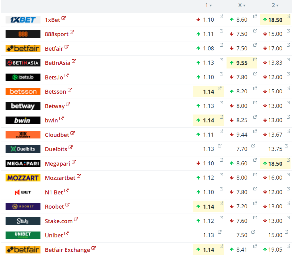 Oddsini upp á heimasigur til Sveis liggja millum 1,08 og 1,14.