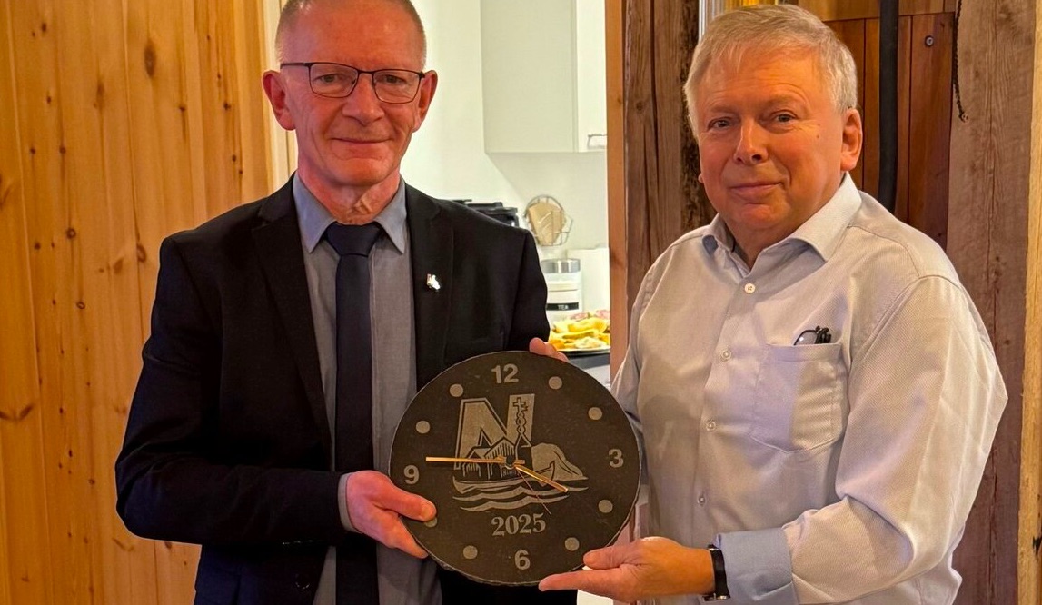 - Í morgun vitjaði umsitingin hjá Nes kommunu í nýggja og hugnaliga Undirhúsinum á Toftum, har Súni í Hjøllum, borgarstjóri, handaði Haldor Gaardbo, formanni í nevndini fyri Undirhúsið, eina jólagávu, sum er ein klokka.