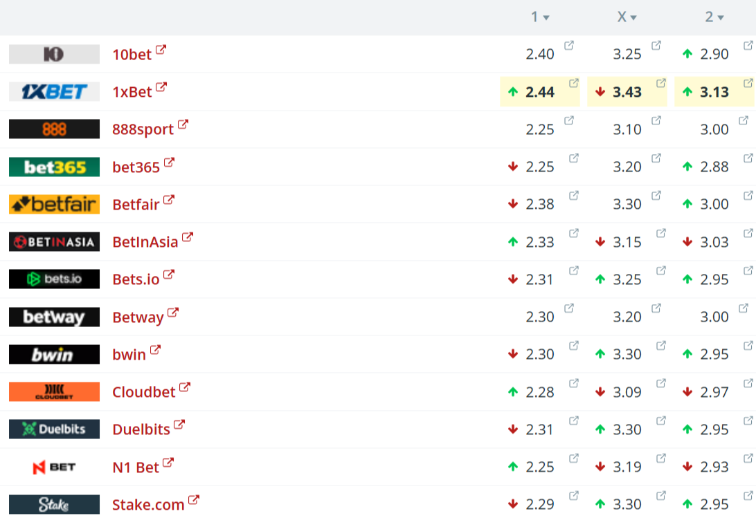 Oddsini upp á javnleik liggja millum 3,10 og 3,43.