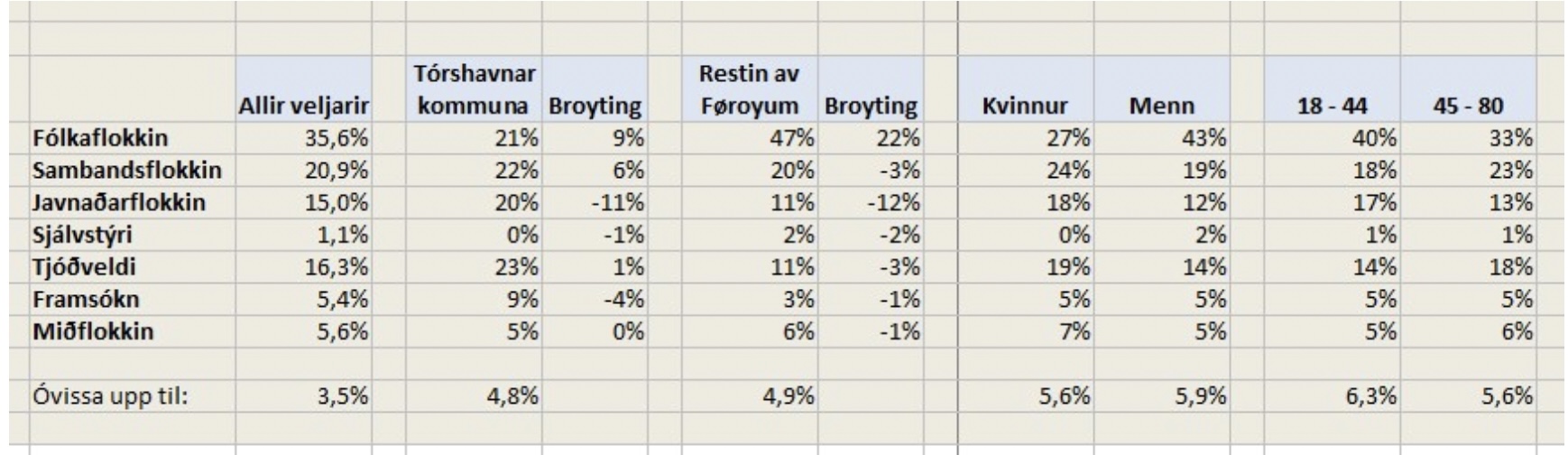 Ein veljarakanning er ein løtumynd. Men allar veljarakanningar seinastu árini hava verið slíkar, sum hendan, og tí er kanningin ikki hugaligu lesnaður hjá løgmanni og hansara fólki – tí fleiri slíkar keðiligar veljarakanningar á rað vísa eina sannlíka gongd við undirtøku floksins.