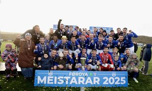 HER ber til at síggja Adrian skjóta sigursmálið.