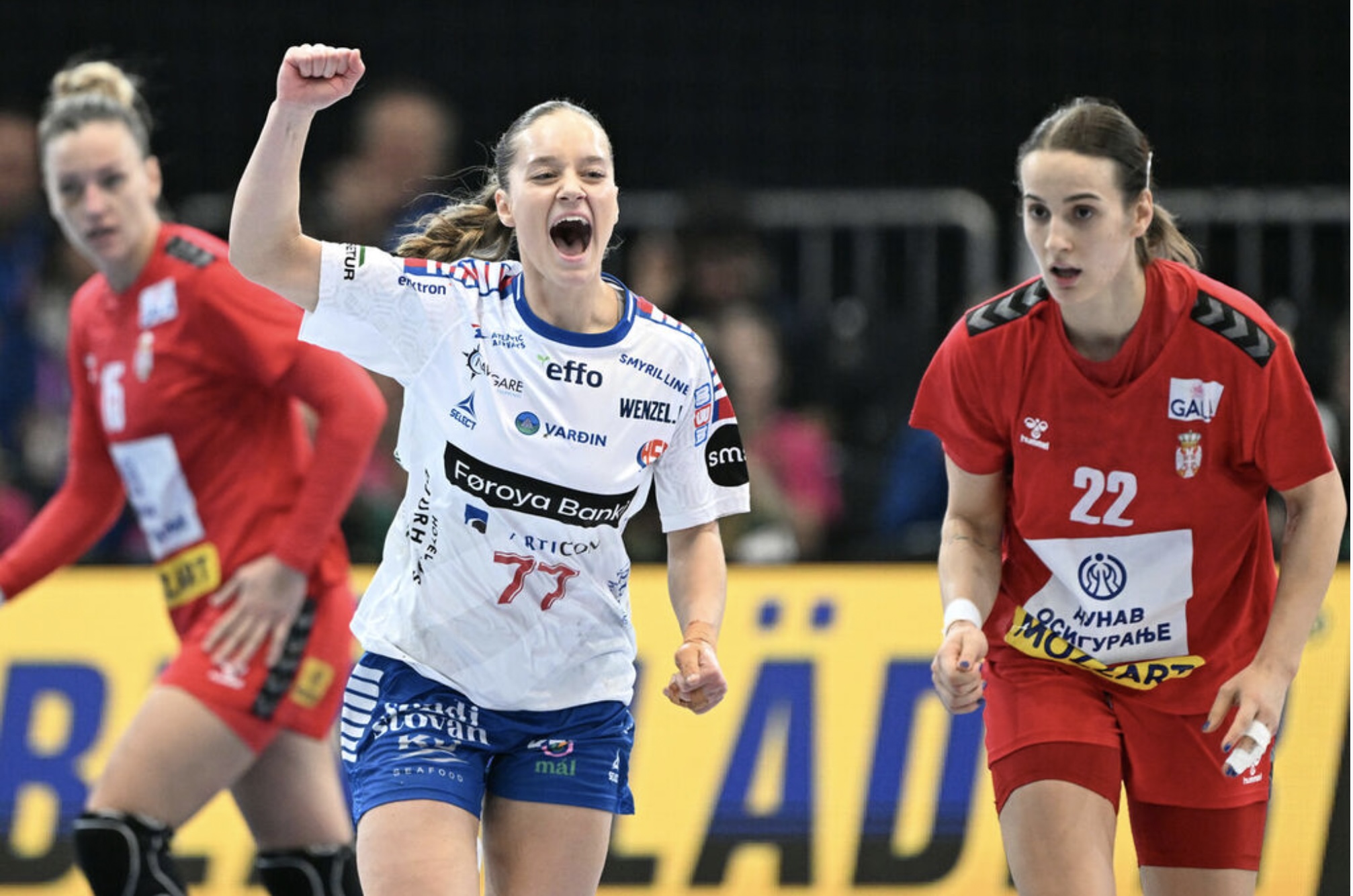 "Endnu en kæmpe præstation af det her lille store hold". Soleiðis setti frásøgumaðurin hjá danska TV2 orð á seinastu dramatisku løtuna av dystinum millum Serbia og Føroyar, har Jana Mittún í teimum allarseinastu sekundunum javnaði til 31-31, og tryggjaði harvið Føroyum enn eitt stig og minniligt úrslit.