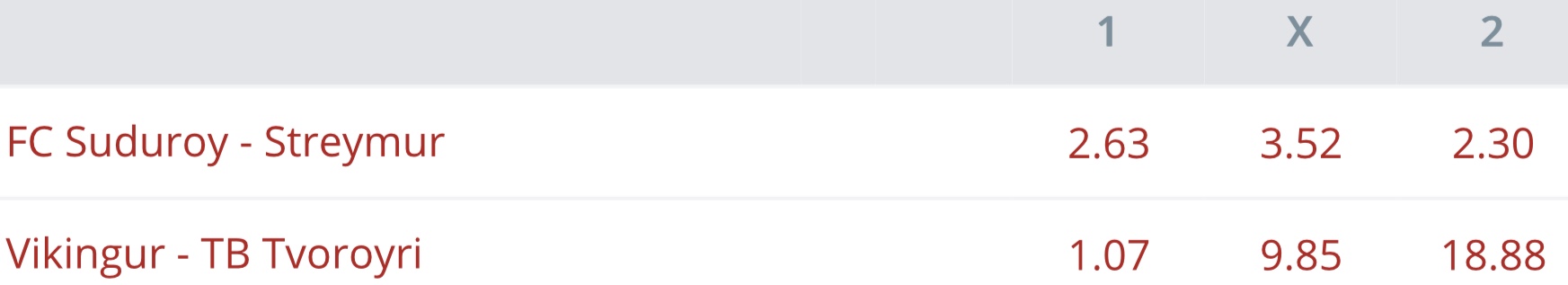 Víkingur hevur eina stóra favorittstøðu hjá altjóða veddingarfyritøkum, ið lata odds upp á dystin. Oddsini millum FC Suðuroy og EB/Streym eru næstan jøvn.