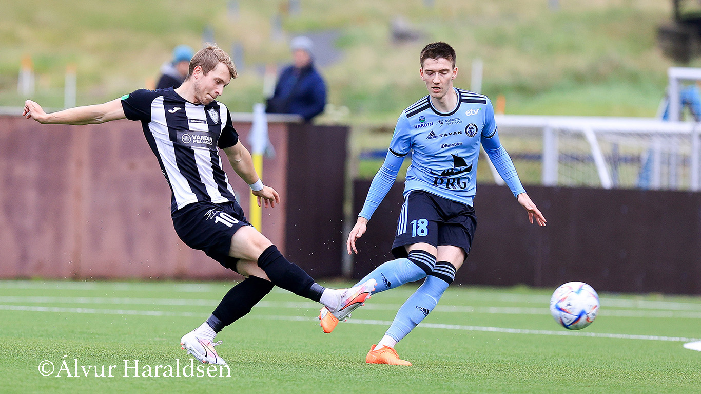 Klokkan 14.30 byrjar dysturin í Sarpugerði í Norðragøtu millum Víking, ið er nummar fýra við 38 stigum, og TB sum er aftast í deildini við 12 stigum.