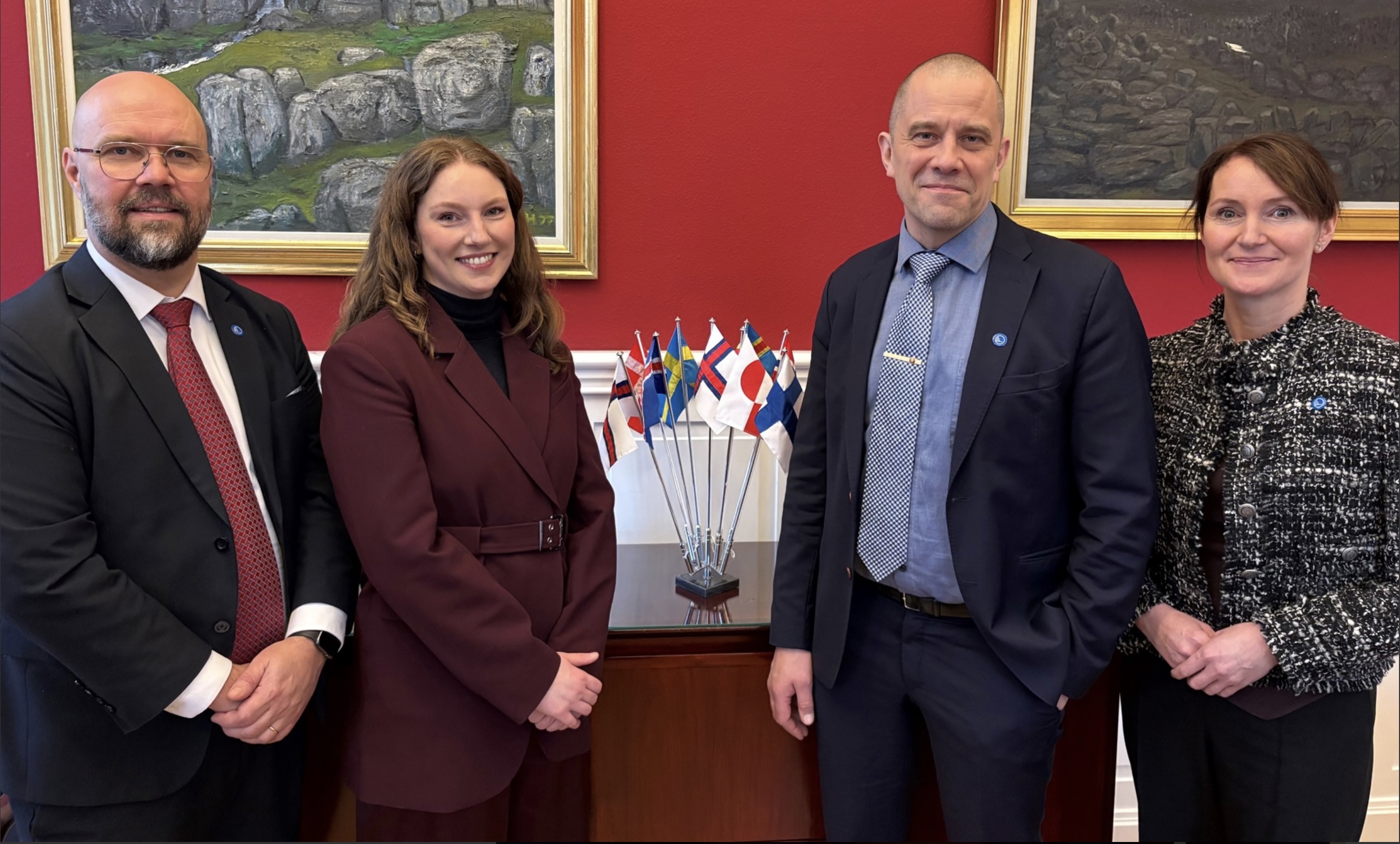 Forsetin og varaforsetin í Norðurlandaráðnum, Ville Väyrynen og Kim Berg, og stjórin í Norðurlandaráðnum, Kristina Háfoss, hava í dag vitjað Tórshavnar kommunu, har Elsa Berg, borgarstjóri, tók ímóti.