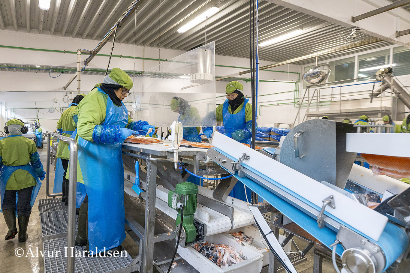 Súsanna Hansen arbeiðir í fyrsta liði í framleiðsluni, hon leggur laksin í kryvji maskinuna, tað hevur hon gjørt í eitt ár. Áðrenn hon fór í kryvji maskinuna at arbeiða, hevði hon ymiskar uppgávur. Men nú dámar henni best at hava fast pláss.