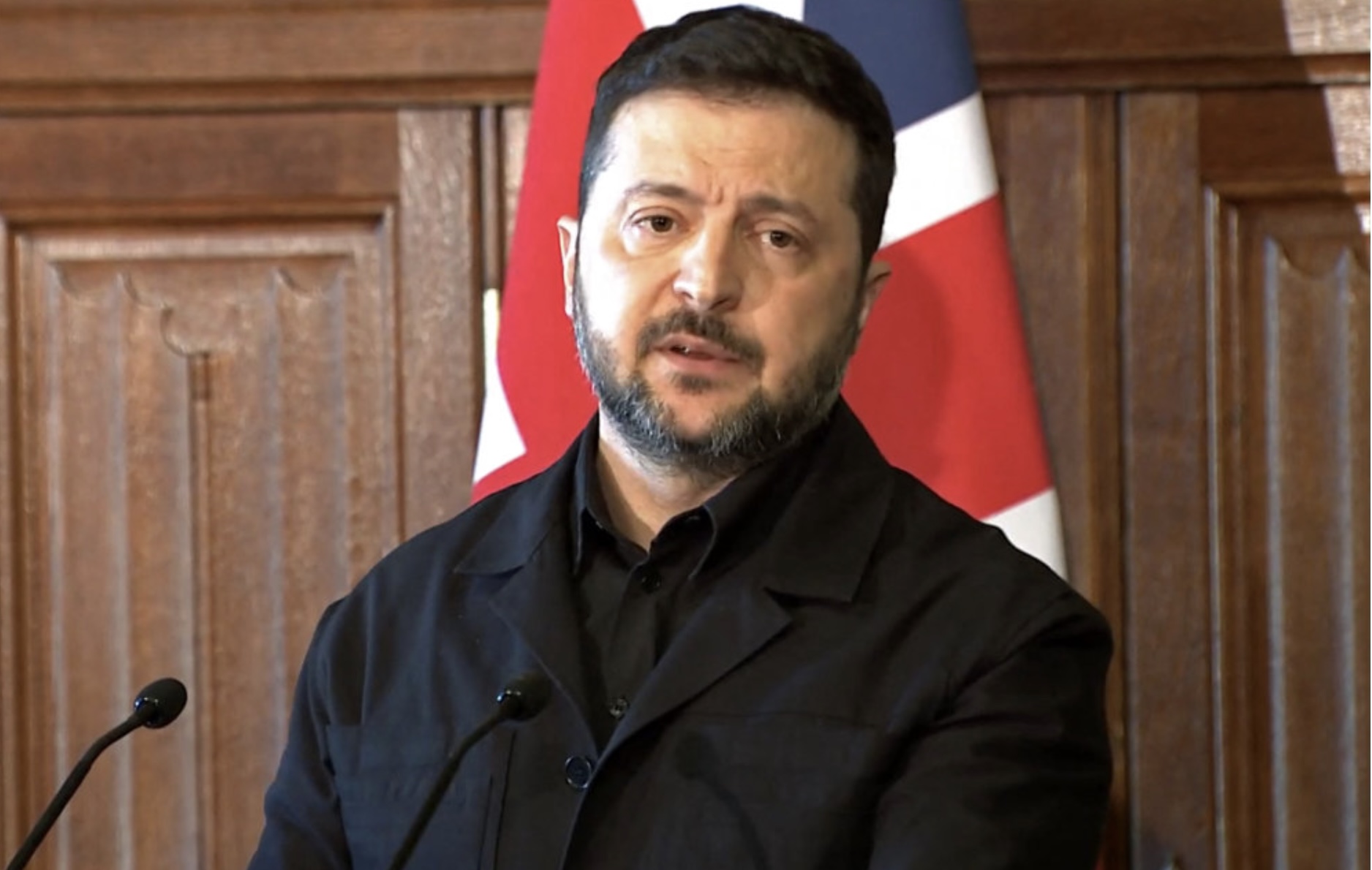 Zelenskyj talar í bretska tjóðartinginum í dag eftir fund við millum annað bretska forsætisráðharran, Keir Starmer. - Mynd: -/Ritzau Scanpix
