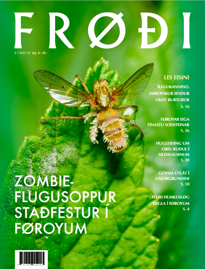 Vit fáa eitt sindur meira av jarðfrøði í grein, sum Uni Árting,Barbara Biskupstø Thorsteinsson og Lis Mortensen hava skrivað.Úr nýggju bókini Føroysk mineral og grótsløg varpa tey ljós ánakrar av gimsteinunum í føroysku náttúruni. Føroya eiga teirfínastu soðsteinar, segði jarðfrøðingurin Thomas Allan, sumtíðliga í 1800-talinum var í Føroyum og savnaði mineral. Eittúrslit av hesum var, at føroyskir soðsteinar og kalsedon prýðasavnsskáp í øllum Evropa.