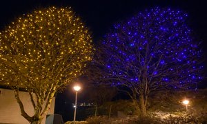 Torgið lýsir nú gult og blátt