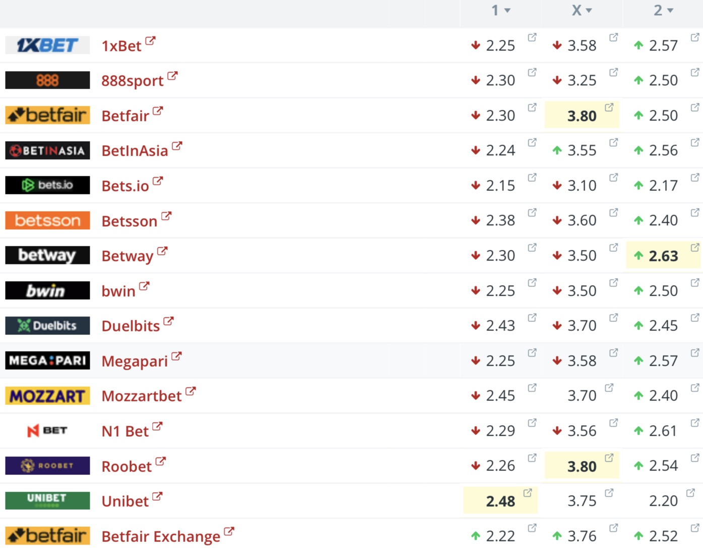 Oddsini hjá altjóða veddingarfyritøkum, ið lata odds upp á dystin eru næstan jøvn.