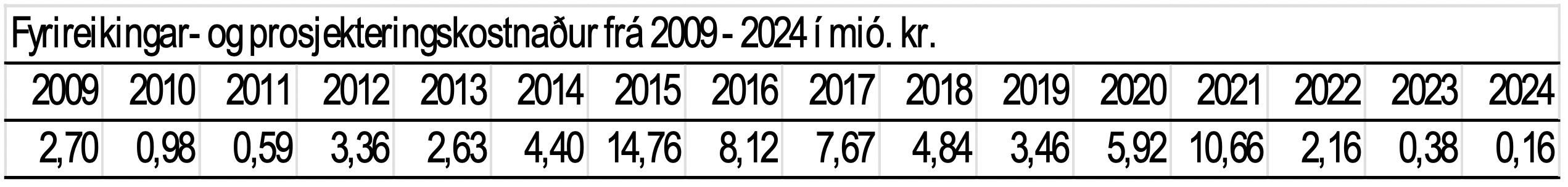 1. Hvat hevur projekteringin kostað tilsamans og býtt yvir ár?