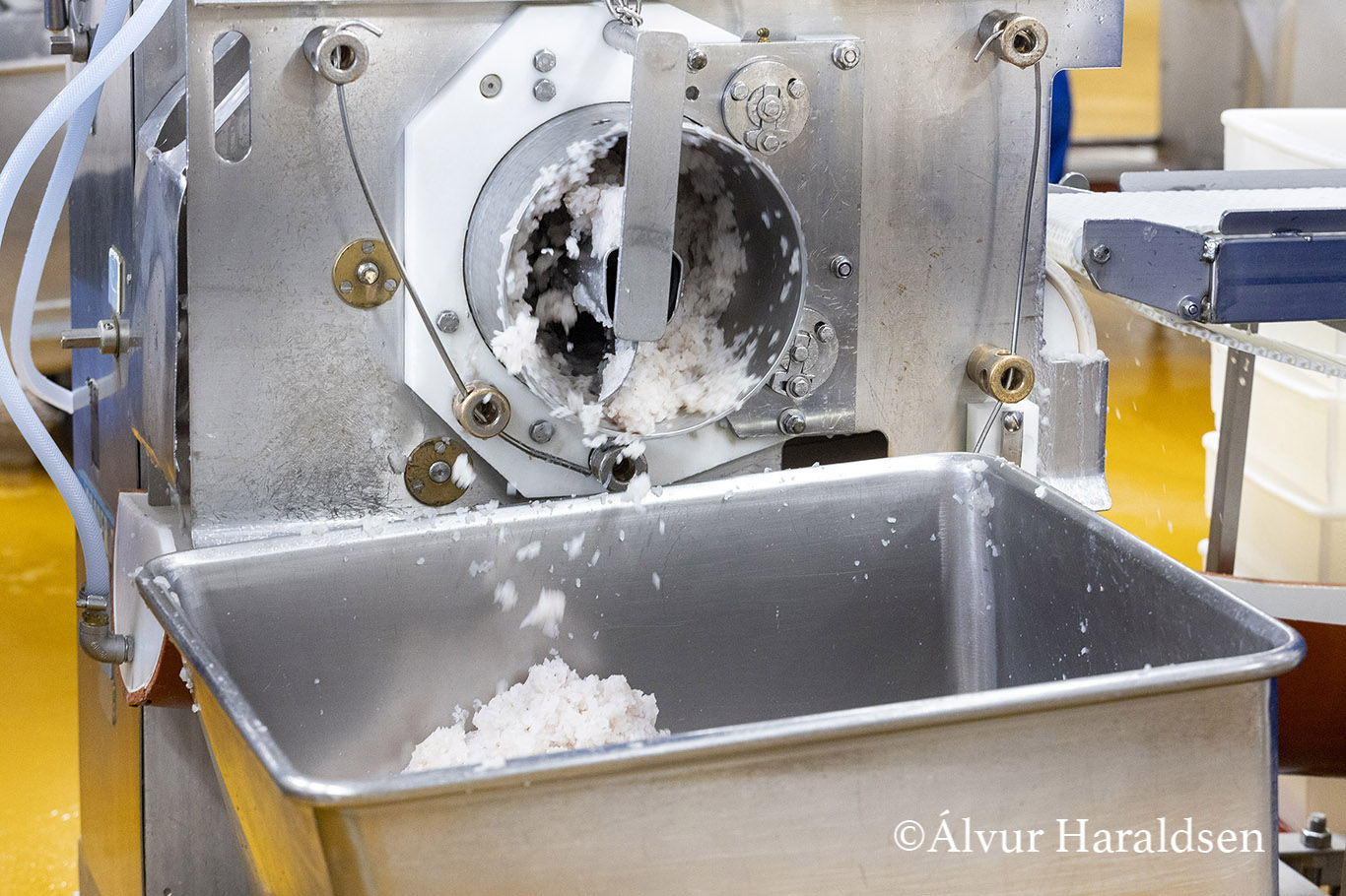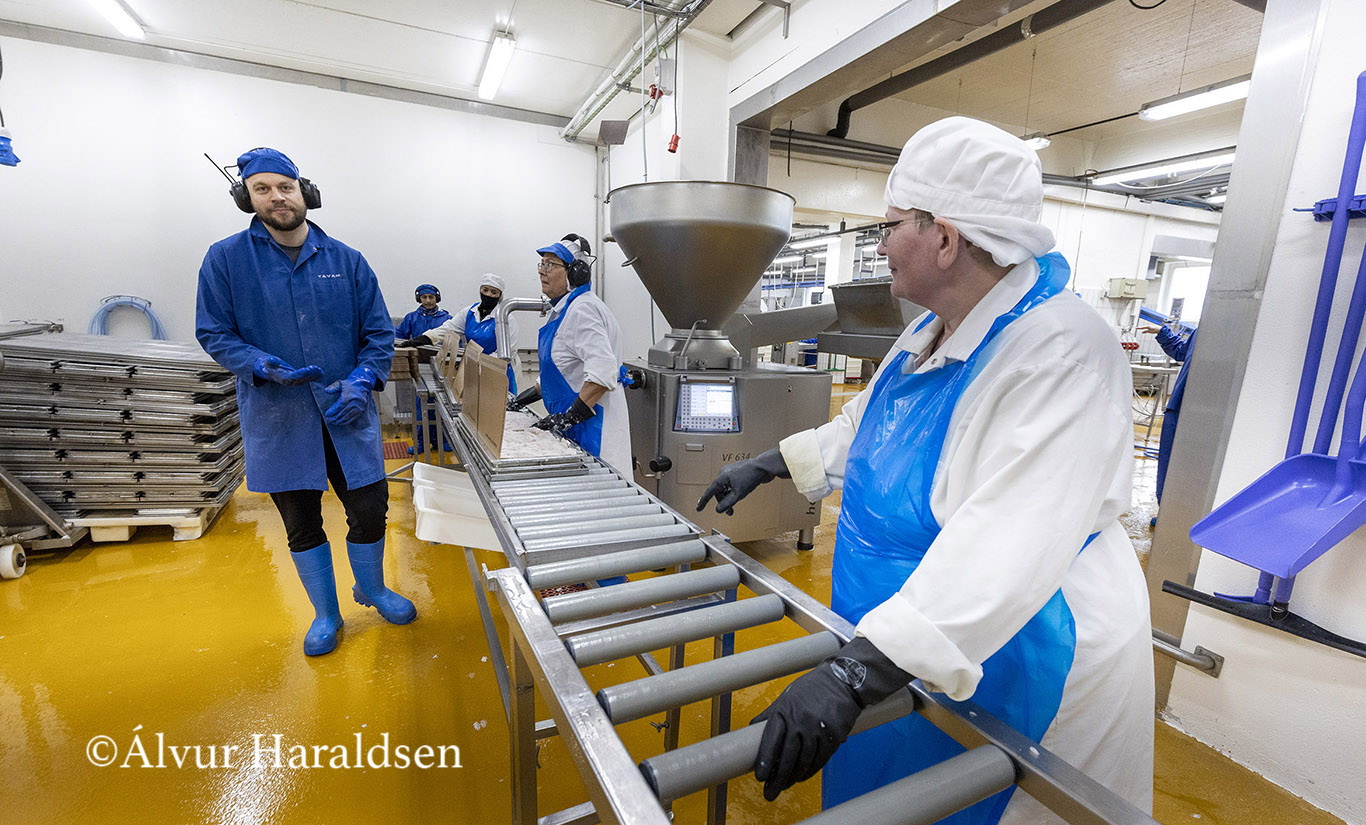Áðrenn fiskurin verður pakkaður, verður hann skorin, og gjørdur til fars. Farsið verður koyrt í ein vogn, trillað yvir til pakkibandið og vigað, áðrenn tað verður pakkað.