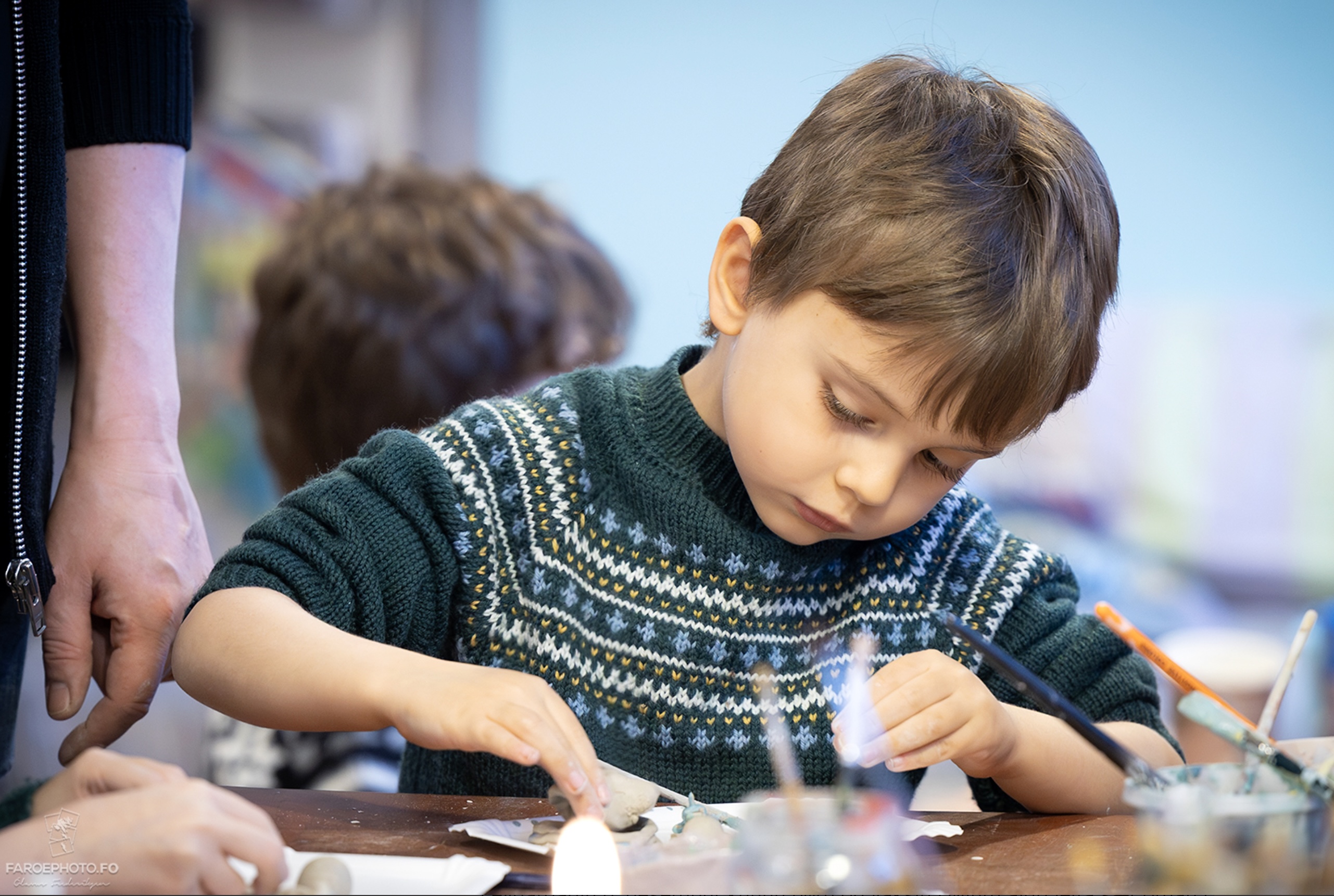Í verkstovunum ber til at baka, prenta, gera leir, bomm, jólaprýði, at verða prýdd og lurta eftir tónleiki.