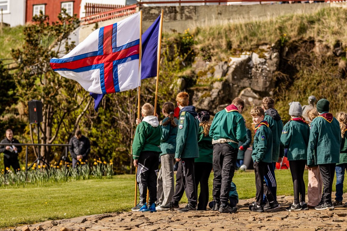 Skótaliðið Royndin skipar fyri flaggdagshaldinum við skrúgongu, røðu, felagssangi og drekkamunni.