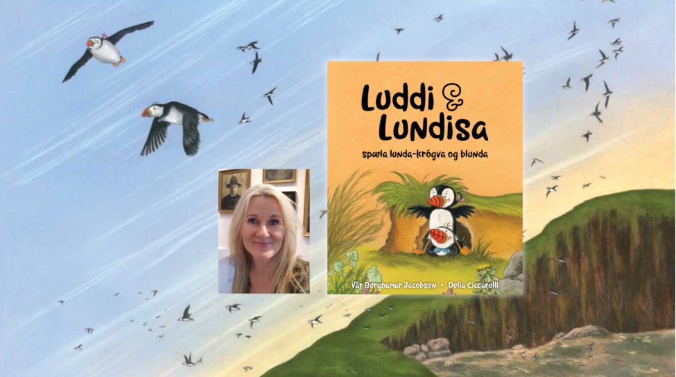 Luddi og Lundisa spæla lunda-krógva og blunda, eitur nýggja myndabókin, sum Vár Berghamar Jacobsen hevur skrivað, og Delia Ciccarelli hevur myndprýtt