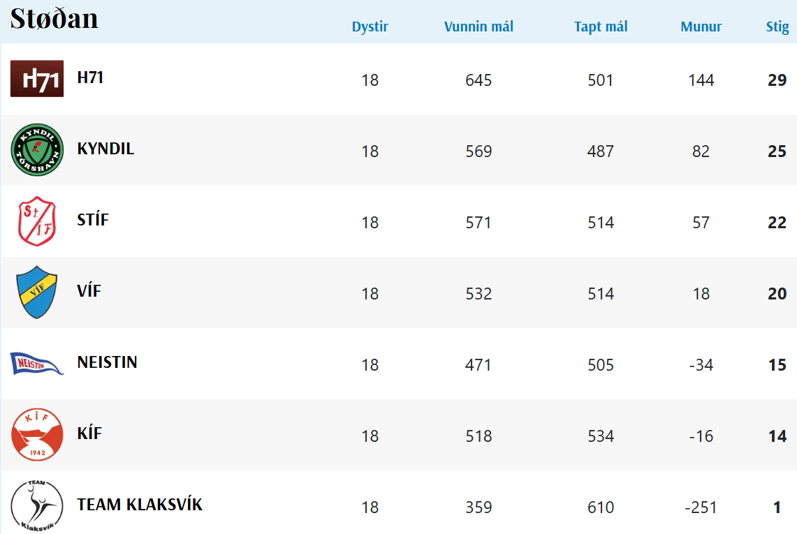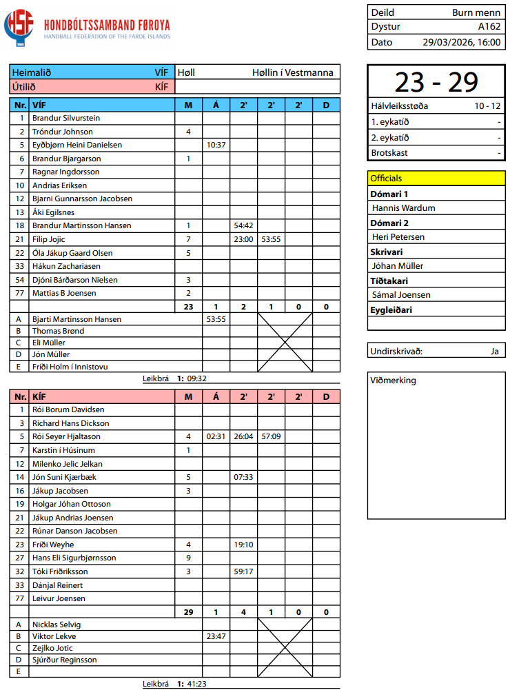 HER ber til frá HSF at síggja dómaraseðlarnar frá dagsins dystum, umframt endaligu støðuna í grundspælinum: