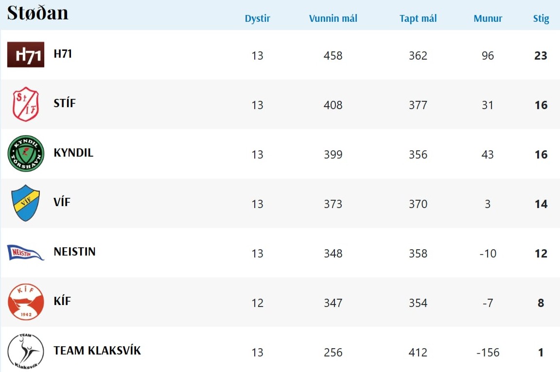 HER ber til frá HSF at síggja dómaraseðlarnar frá kvøldsins dystum, umframt støðuna í deildini: