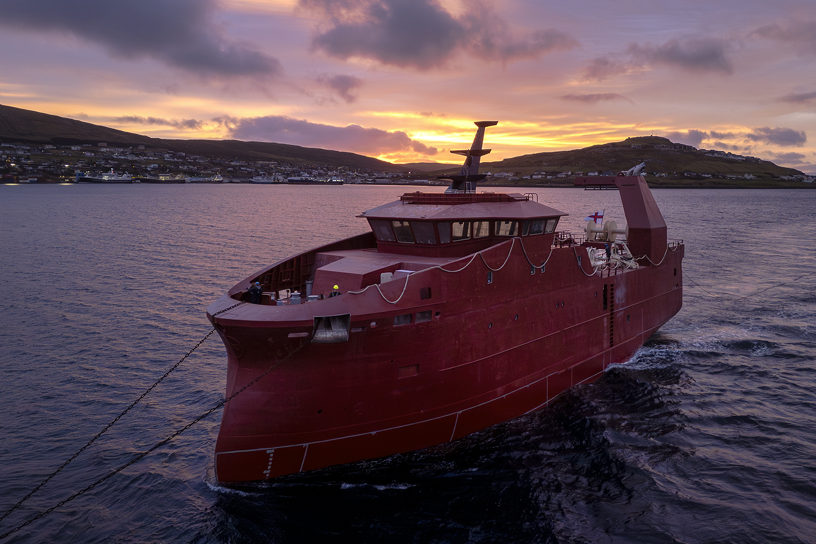 Í morgun, jólaaftansmorgun kom Sleipibáturin Serval M/s á Skála við skrokkinum til nýggja frystitrolaran, sum MEST komandi summar skal lata Varðanum. Trolarin skal nú gerast liðugur á Skála, og fær hann tá navnið Dunga Jákup M/tr.