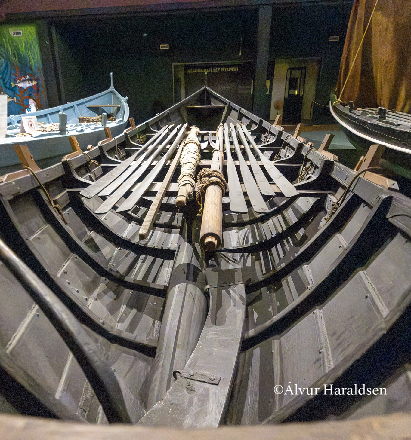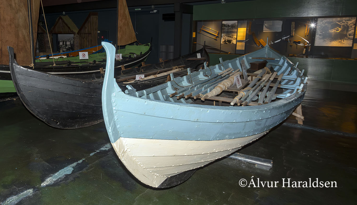 - Vit hava jú eingi trø í Føroyum, tí blivu bátarnir bygdir við innfluttum viði. Í Noregi eru bátarnir eyðkendir av, at tú kundi fara í skógin og taka eitt træ ella eina klótu. Tá fært tú ein sterkari bát og kann forma hann smidliga, men í Føroyum hevur tú lagað bátin til tey viðurskifti sum eru, bæði handilsliga, og hvussu umstøðurnar vóru í sjónum.