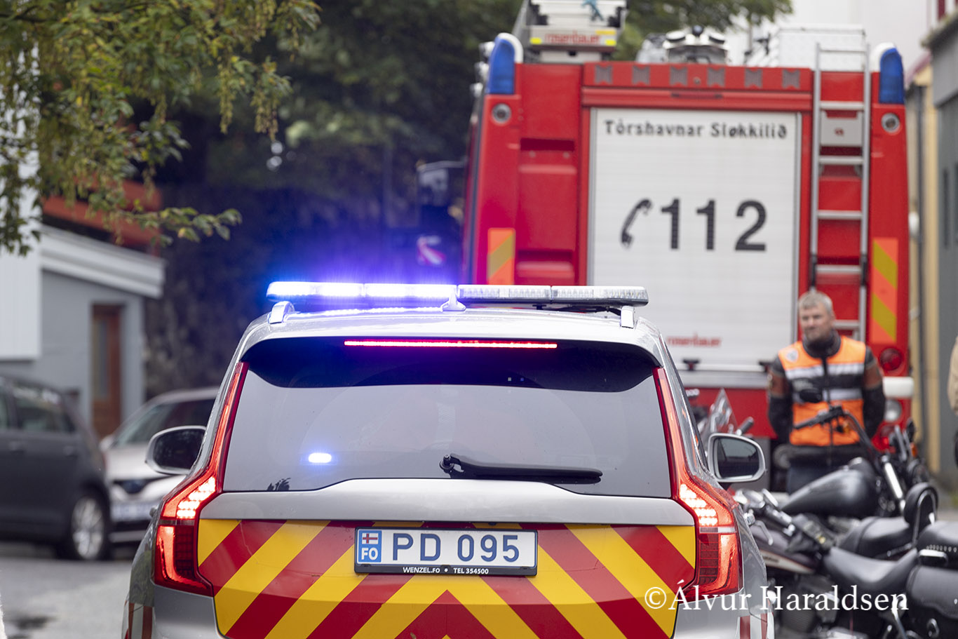 Tað vísti seg, at roykur kom úr eini uppvaskimaskinu. Løgregla og sløkkilið komu á staðið, og tað vísti seg, at eldur var í uppvaskimaskinuni. Men tað eydnaðist at sløkkja eldin við einum eldsløkkjara.