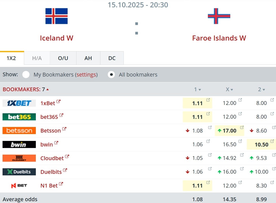 Miðaloddsini upp á føroyskan útisigur eru so høg sum 8,99.