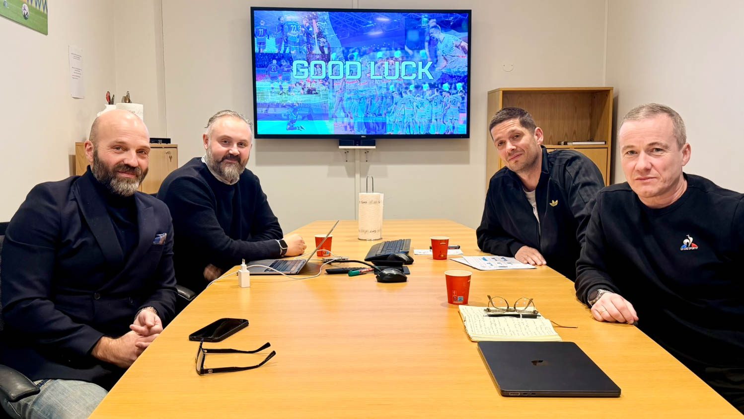 Í Reykjavík hittu føroysku venjararnir teirra starvsfelagar í Íslandi, Arnar Gunnlaugsson og Davíð Snorri Jónasson, ið standa á odda fyri íslendska manslandsliðnum.